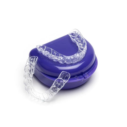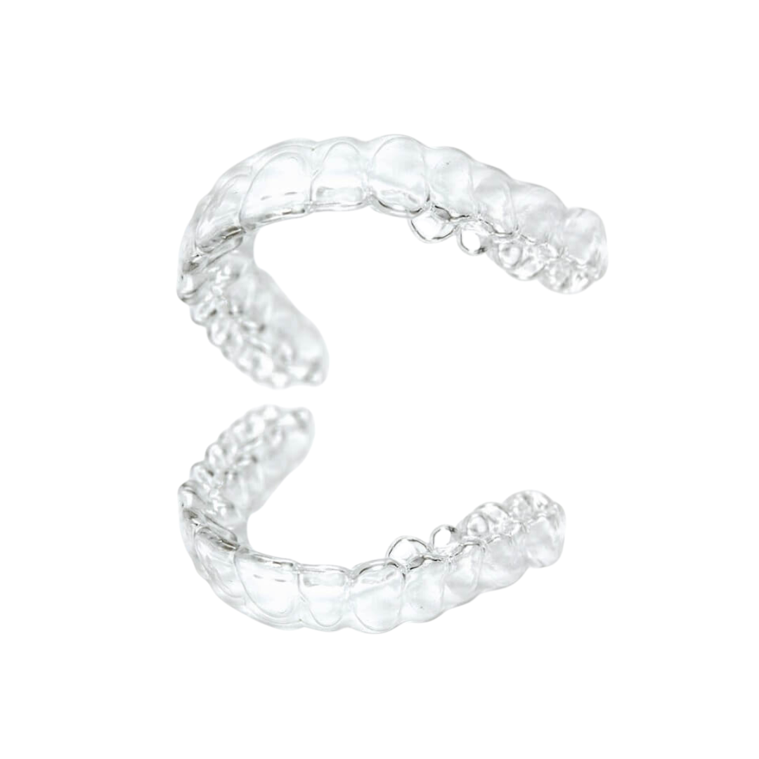 Op maat gemaakte aligners voor zowel de boven- als onderkaak. Dit is een volledige alignerbehandeling van Orthoclub. Inclusief nachtbeugel.